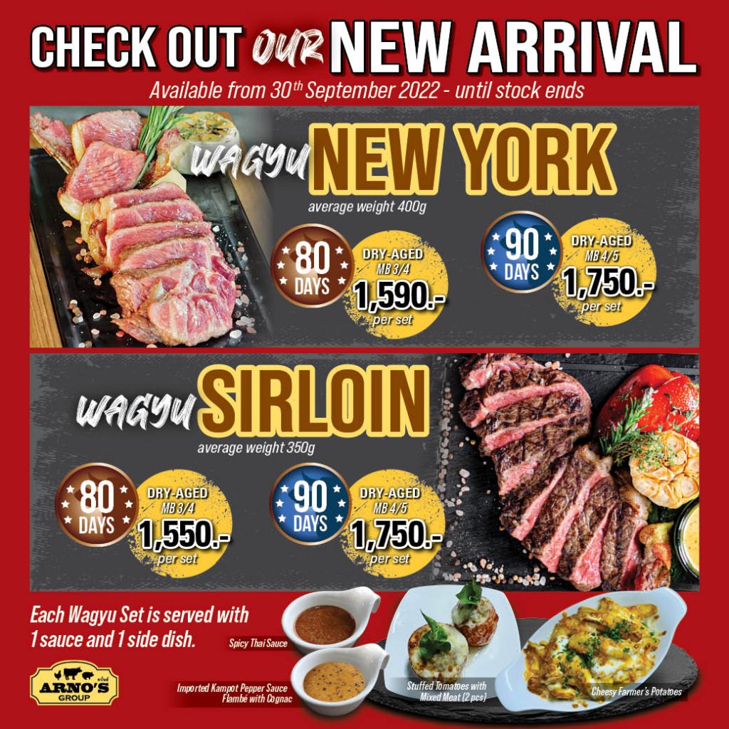 New Promotion!! Arno’s Promotion!!! ๐๐ย Beef lovers don’t missSpecial Wagyu is back! ๐ฅฉย ๐ฅฉ๐ฅฉ๐ฅฉ Dry-Aged 80 Days ย ๐ฅฉ Wagyu New York (MB
